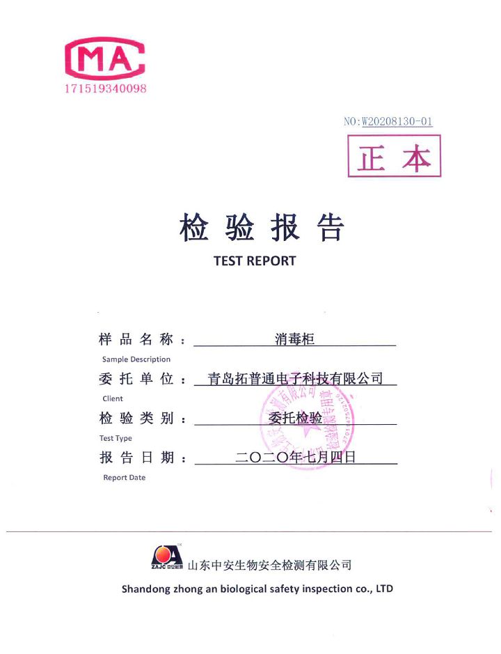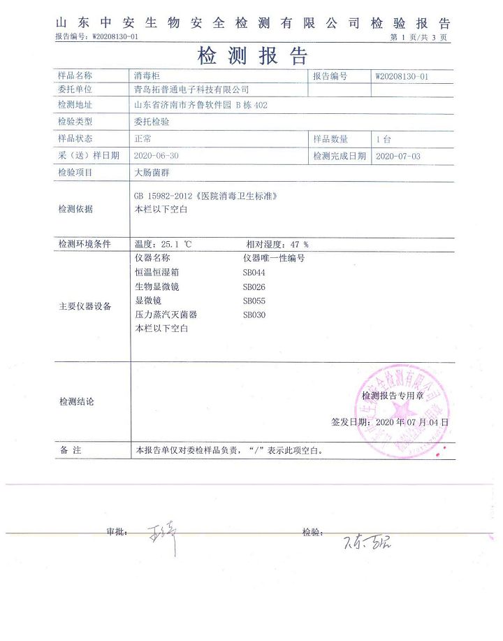青島拓普通電子科技有限公司 > 榮譽(yù)資質(zhì) > 消毒檢測報(bào)告
